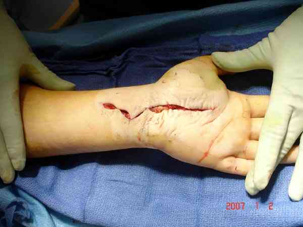 2.Как выглядит КС на верхней конечности?(тоже фасциотомия?)