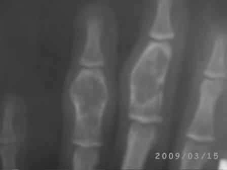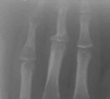 Коллеги, почти уверен, что эти два случая поражения фаланг имеют различный генез. Простое выявление хрящевой ткани в биопсийном материале, увы, не дает еще диагноза.. Хотя местное лечение (если оно необходимо) может быть сходным. Единственное, не стал бы увлекаться широкими резекциями и массивными костными пластиками в детей.