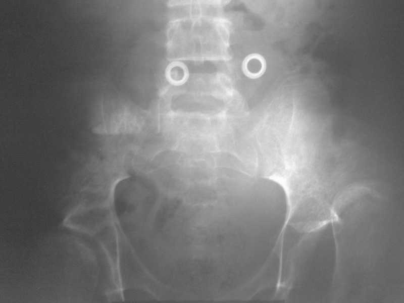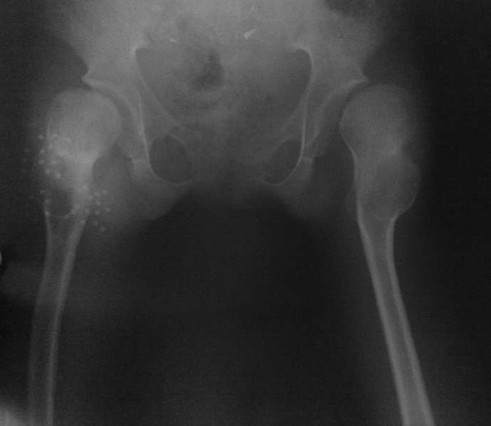 Здравствуйте, уважаемые коллеги. Выскажите, пожалуйста, свое мнение про данный случай. Под общим наркозом вправлен. 2 недели ребенок находился на лейкопластырном вытяжении. В связи с тяжким состоянием ребенка (диспептические явления, задержка стула, носовые кровотечения, начальные явления застойной пневмонии) вытяжение снято. сразу после чего сделано рентген контроль (фото 1). а через неделю, то есть сегодня сделан второй снимок (фото 2). Где видно повторный вывих. На рентгенограмме видно, что в 3 месячном возрасте не была диагностирована тяжелая форма дисплазии с подвывихами, где, кроме вывиха, имеет место непролеченные диспластические суставы с обеих сторон, больше справа. Какое ваше мнение что делать в данном случае? Операцию ребенок не перенесет. Ни скелетное, ни лейкопластырное вытяжение за бедро долго не выдержит. Даже если вправить вывих, он повторится в силу диспластичности сустава. Или разрешить ходить и двигаться так, как есть, с помощью костылей. Best regards, Victor N. Green Transcarpation Region, Ukraine Department of Traumatology and Orthopaedics < | >