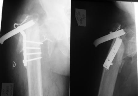 По теме: фрагменты пластины полюбому надо удалять. После удаления сходу заменить ее на что-то более существенное. Возможно тут подойдет фиксатор DHS. (Подозреваю что на конструкции подороже денег у пациента может и не оказаться). На счет эндопротезирования - опыта не имею... поэтому оставлю этот вопрос без коментариев.
