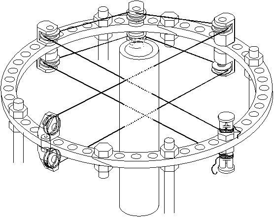 Небольшое пояснение. Недостатки фиксации спицами или стержнями имеет существенный недостаток, заключающийся в том, спицы невозможно натянуть с одинаковой силой, а стрержни также всегда несут разную нагрузку. Это образно можно сравнить с упряжкой лошадей, в которой каждая из них пытается бежать с разной скоростью, а в итоге самая быстрая из них тащит остальных. Отсюда и осложнения во время фиксации. В предлагаемой системе используется гибкий фиксатор (трос, синтетическая нить), перекинутый через блоки. Все его плечи несут совершенно одинаковую нагрузку. Система в перспективе будет снабженаодним электродвигателем с датчиком напряжения, который автоматически будет поддерживать заданную силу натяжения.В представленном виде система фиксации запатентована. На сегодняшний день она значительно усовершенствована.