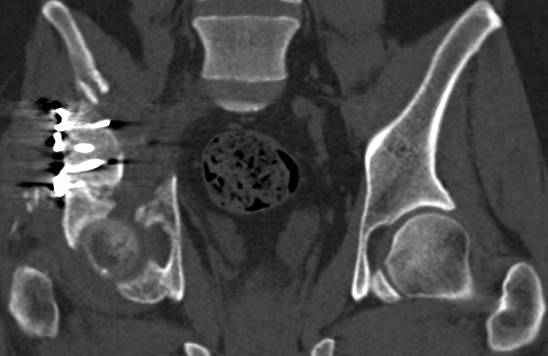 Интересно было бы посмотреть рентгенограммы до операции. У меня впечатление, что я не все вижу, что тут есть... Уважаемые Господа "тазисты" и "тазологи", к какому типу переломов вертлужной впадины по Летурнелю вы бы отнесли это случай?