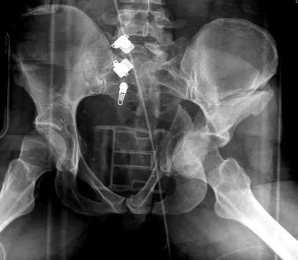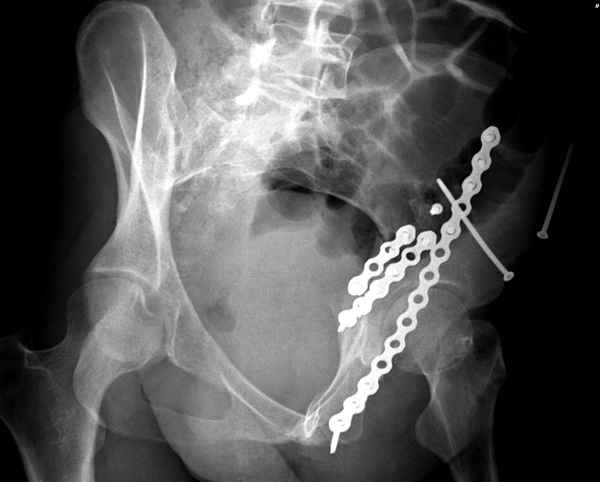Здесь несколько вариантов двухколонных свежих переломов, которые были оперированы из одного-заднего, а также из двух: переднего и заднего доступов.