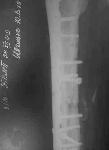 10.10.09.Заживление раны per prima. Операция:16.12.09,открытый накостный МОС,аутокостная пластика(из крыла подвздошной кости)правого бедра. После п/о периоде заживление раны вторичным натяжением (на 5-е сутки распущены швы, после очищения раны наложины вторичные швы) На этапных RO-гр:остеолизис костного трансплантата и дистального фрагмента перелома бедра. Вопрос:дальнейшая тактика лечения-БИОС аутокостная пластика (трансплантат на сосудистой ножке М/Б кости). Билокальный остеосинтез по Илизарову с остеотомией подвертельной и надмыщелковой области бедра. Мозможен ли аутотрансплантат без сосудистой ножки? Чем улучшить васкуляризацию? Декортикация? Тактика выжидания остеолизиса, а затем оперативное лечение.
