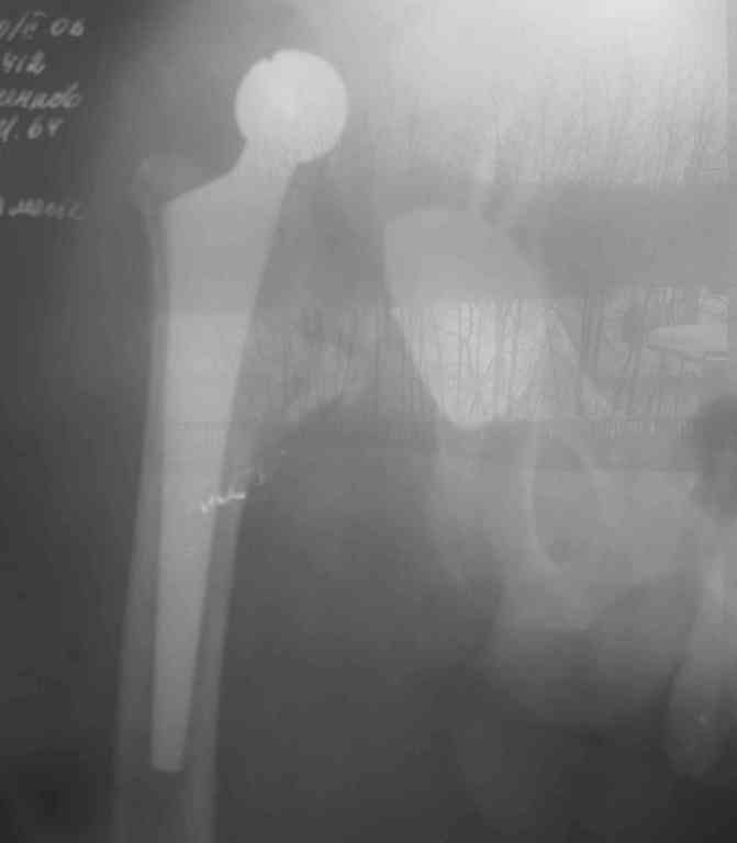 Сейчас прошло 4 года после операции. Больной ходит с полной нагрузкой на оперированную конечность с тростью. болей нет.
