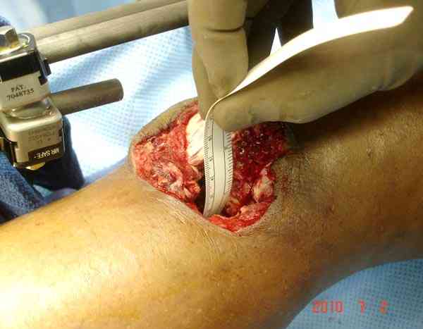 Поступила к нам пациентка 19 лет с диагнозом "Состояние после открытого многооскольчатого перелома дистального метаэпифиза правого бедра, проксимального метаэпифиза большеберцовой кости". Травма в июне 2010 года в Индии. ДТП. Тамошние доктора выполнили ПХО с удалением фрагментов латерального мыщелка бедра. Наложен АВФ. По возвращению в Украину через 1,5 месяца АВФ демонтирован. И так как смещение фрагментов бедра не устранено, было принято решение после заживление ран от стержней выполнить МОС. Не сколько для четкой анатомической репозиции сколько для подготовки к установке эндопротеза в будущем. Что и было выполнено 10 августа. Интраоперационная картина следующая. Дефицит практически всего латерального мыщелка бедра. Была выполнена попытка закрепить то что осталось от мыщелка, но он развалился на фрагменты. ВЫполнен ситуационный синтез спицами. Дефект заполнили бикортикальным трансплантатом из крыла подвздошной кости, МОС страйкеровским фиксатором. В послеоперационном периоде к 10 дню начались боли, гипертермия. Повышение СОЭ, лейкоцитоз. Посев крови транзиторная бактериемия золотистого стаф. Взяли в операционную. Выполнили дренирование сустава и области п\о раны. Получили гематому фактически с гноем. Температура нормализовалась. Назначили ванкомицин по 1000 мг 2 раза в день.который принимает с 28 августа по сей день. Температура нормальная, СОЭ на убыль. Посевы отделяемого стафилококк 2 ст активности. Но отделяемое по дренажам продолжает идти в достаточном количестве. Взял посев, сеется стаф. 3 ст активноси. К ванкомицину, понятно, слабочувствителен. Что в этой ситуации посоветуете? Менять антибиотик и продолжать бороться за фиксатор? В связи с раздражением синовии удалять нестабильные элементы остатка мыщелка, трансплантат и фиксатор с переходом на АВФ?Гентамициновые бусы? Надеюсь на скорый ответ. С уважением, Владимир Новиков. < | >