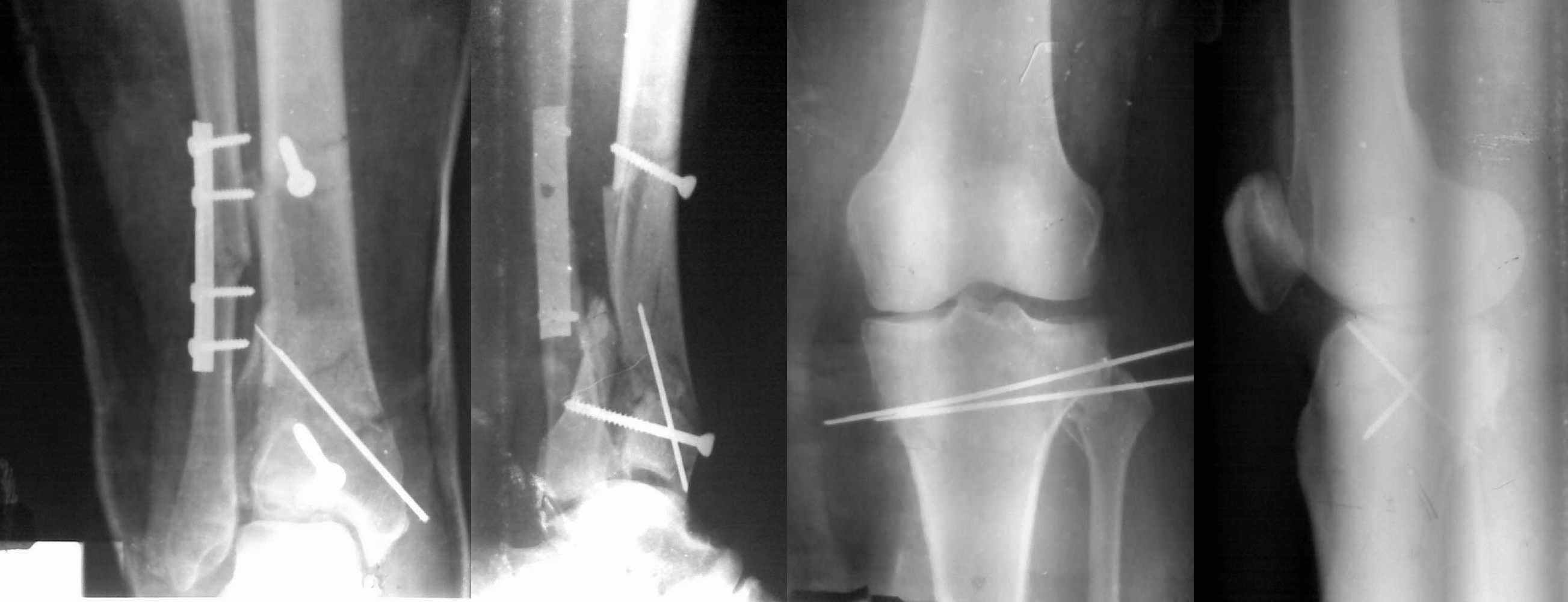 Пациентки прооперирована, результат чего на снимках. Выполнена открытая репозиция костей правой голени, синтез малоберцевой пластиной, б/берцевой винтами, имеющиеся фиксаторы не подходили, было принято решение репонировать отломки, синтез винтами, гипсовая повязка.