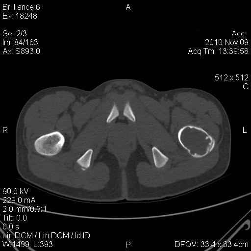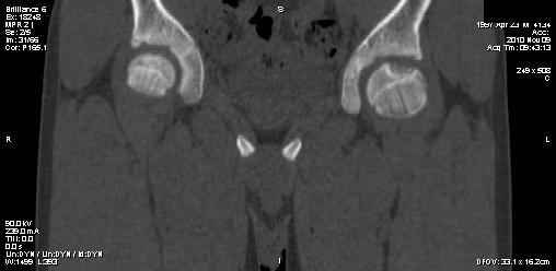 Ув. Сергей! Д-з: или солитарная киста, или аневризмальная (есть небольшое "вздутие") или остеобластома ( старое название "остеобластокластома"). Если 3 вариант то полость надо обработать спиртом или азотом. Предпочтительнее аутопластика из 2 подвздошных костей. Так как срок фикс. длительный то АВФ субоптимален. Предпочтительнее фиксация угловой нестандартной пластиной 110-115 град ("разогнутая" 95 град).В запасе минимум 3 пластины с 3 типоразмерами клинка (расстояние от tuberc. innominatum до перехода метаэпифиза в нижний полюс головки).Ножка: минимум 3 винта в "здоровой" кости диафиза.Перед формированием канала пробойником 3 "страховочные" спицы: большой вертел центр головки (межвертельный перелом лучше перелома шейки) Аутопластика после МОС.