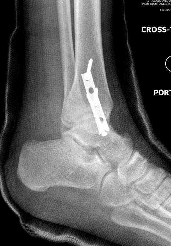 Реконструкционные пластины на лодыжке очень грубые, и из-за тонкого слоя кожи над дистальным концом малоберцовой могут осложниться пролежнями кожи изнутри.