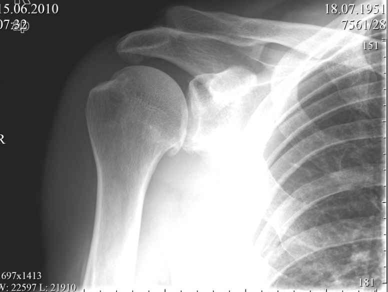 Тогда, в июне 2010года, когда я впервые увидел пациента, он щадил руку, было ограничение объема движений в правом плечевом суставе. Потому я предложил заняться лечебной физкультурой а потом посмотреть достигнутый результат.