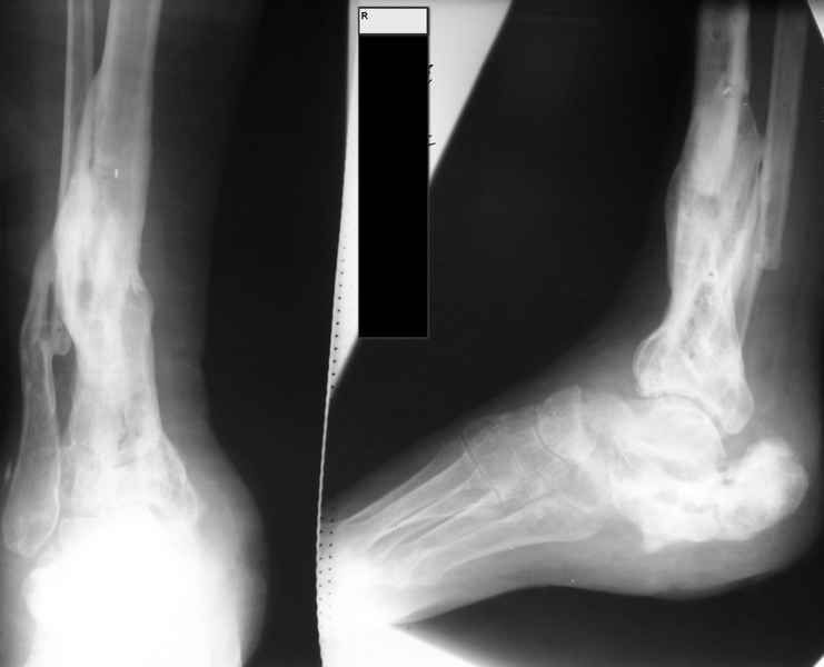 Patient N., age 25, falls from heights (2008). Complaints of pain in the ankles, in the heel when walking. She was treated by external fixation on open comminuted fractures of both legs, fractures of the calcaneus. Then she was treated by external fixation from nonunion of both legs. Now fractures are fused, apparatuses removed in the spring of 2010. How to help a girl?