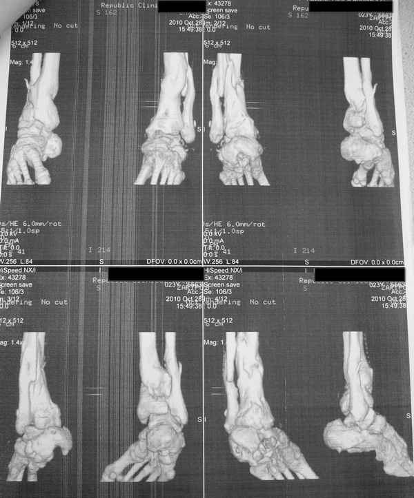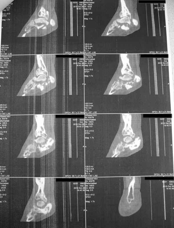 Patient N., age 25, falls from heights (2008). Complaints of pain in the ankles, in the heel when walking. She was treated by external fixation on open comminuted fractures of both legs, fractures of the calcaneus. Then she was treated by external fixation from nonunion of both legs. Now fractures are fused, apparatuses removed in the spring of 2010. How to help a girl?