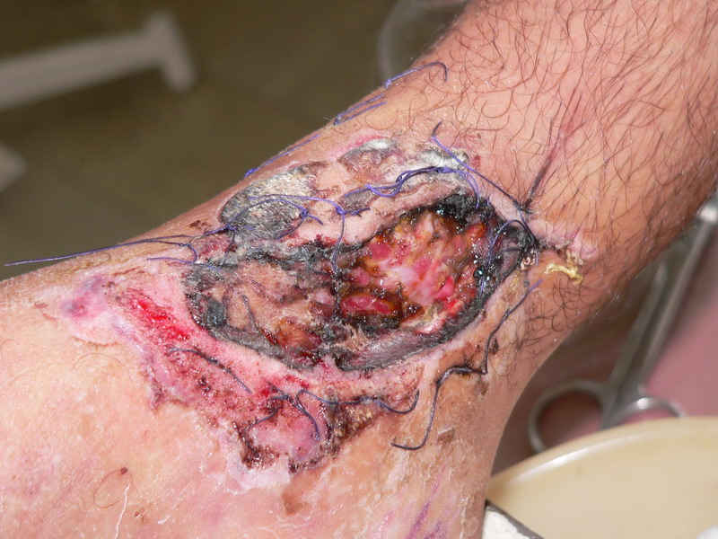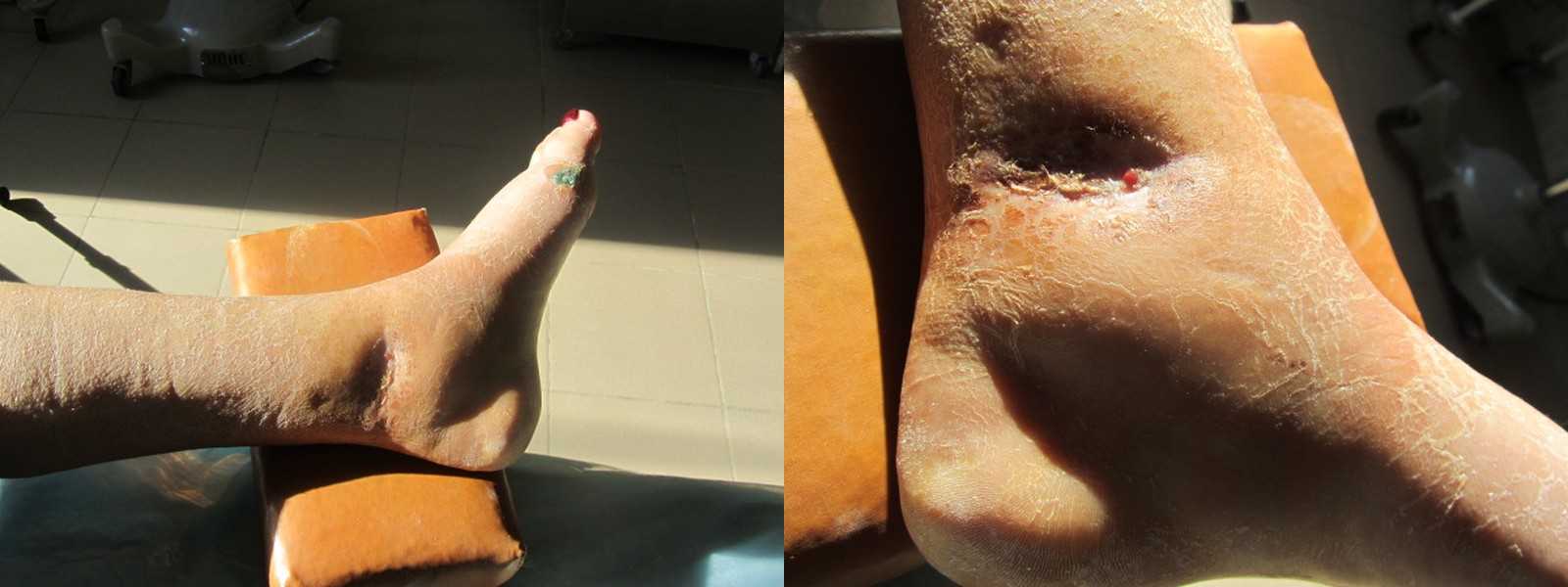 Края раны втянуты, если и закроется, с грубой рубцовой деформацией. Иссечь края и вести открыто" в окошке гипсового сапожка". Для сближения краев может стопу в варус?