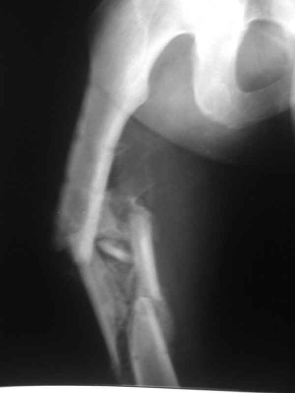 Неправильно срастающийся оскольчатый перелом бедра |