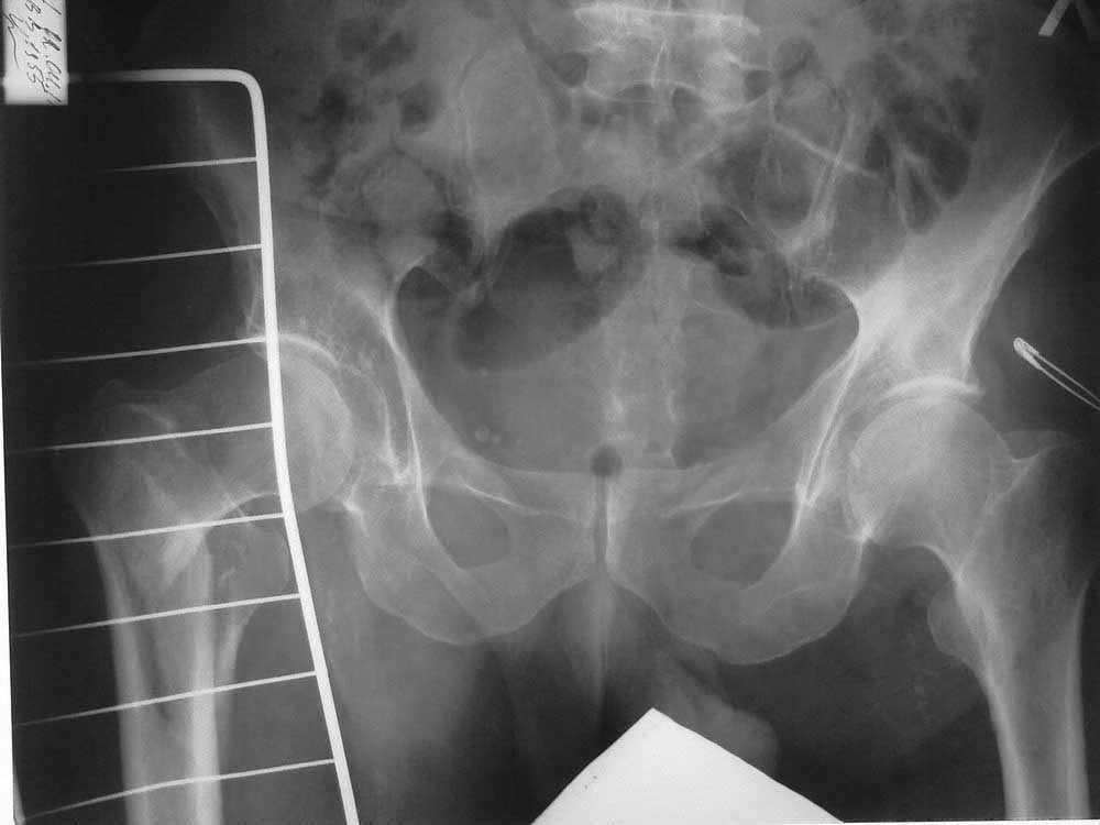 Раньше больной передвигался с опорой на правую нижнюю конечность