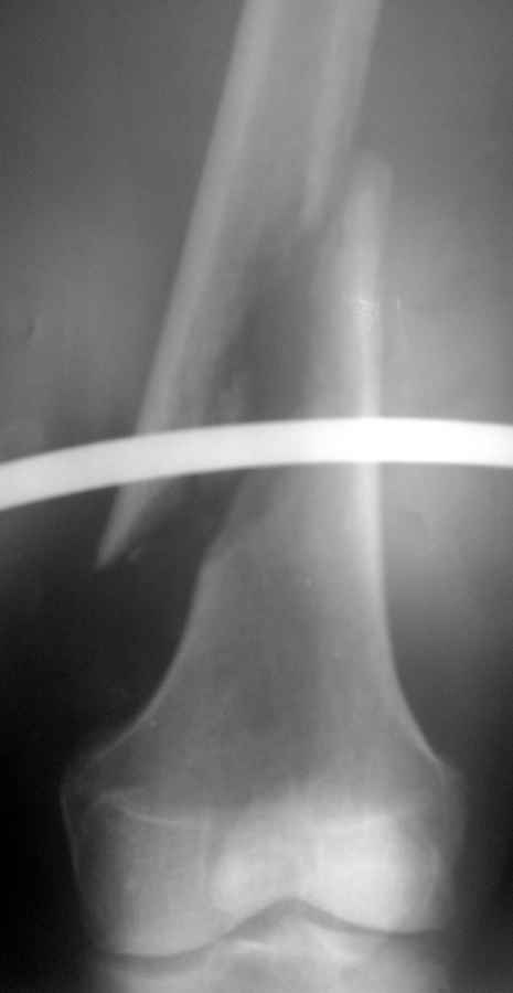 Перелом бедра на фоне гематогенного остеомиелита |