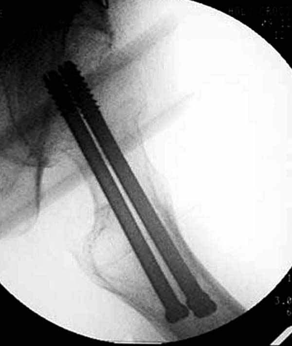 У больных с ожирением и соматическими заболеваниями нежелательно открывать место перелома. Гвозди от DePuy с двумя шурупами рассчитаны для переломов бедра, и приходилось их применить для фиксации подвертельных переломов, но более адекватную фиксацию создает Gamma 3.