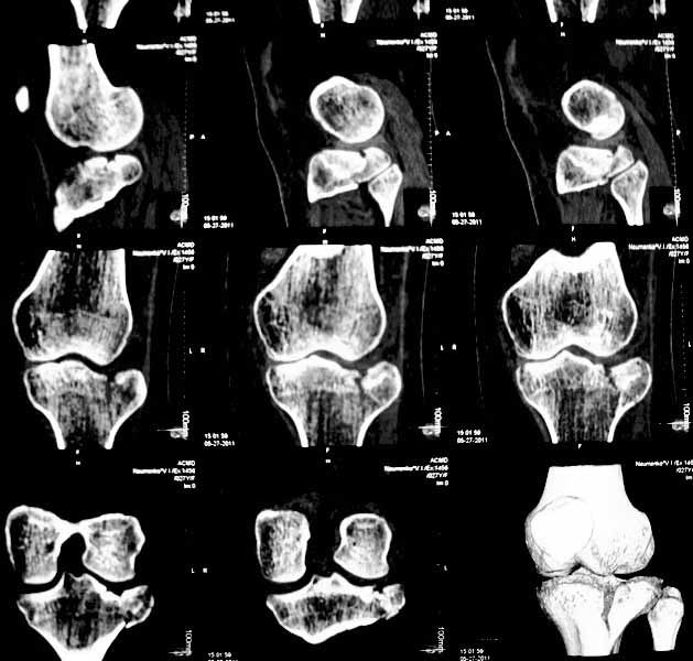26 мая обратилась ко мне за консультацией с вопросом – можно ли снять иммобилизацию немного раньше и начать ходить без костылей?. СКТ – снимки прилагаю. -клинически – вальгизация коленного сустава, умеренная сглаженность контуров сустава, постиммобилизационная контрактура сустава, медиальной и латеральной нестабильности сустава нет. Интересуют вопросы: -тактика лечения: -если операция, то стандартная открытая репозиция с приподнятием мениска, обзором части сустава, подъемом импактированного фрагмента, костной пластикой и фиксацией блокированной пластиной и винтами ( в больнице ЭОПа нет) или есть другие варианты? -понимаю, что операция сложна, идеала достичь будет также сложно, но возможно ли за сустав побороться именно сейчас?, а не ждать ЛФК, реабилитации, получения результатов консервативного лечения и дальнейших артроскопий, остеотомий и пр. -какие результаты лечения можно предположительно получить после выполнения операции с улучшенным, но неидеальным сопоставлением отломков и какие результаты можно ожидать от консервативной методики, будет ли лучше? -если тактика лечения консервативная, то какие ориентировочные сроки осевой нагрузки на больную ногу, сроки перехода на трость. Буду рад выслушать все предложения. Заранее благодарен. С уважением Голиков Валерий, БСМП, Киев