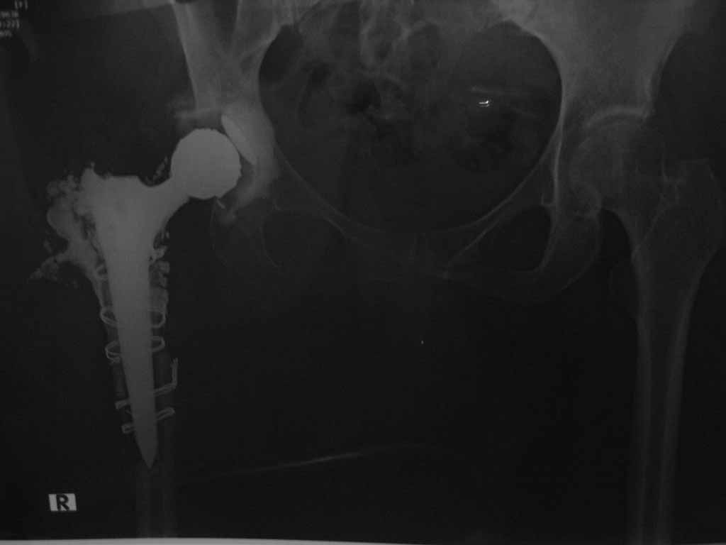Уважаемые коллеги. Помогите определить тактику дальнейшего лечения. Больная 47 лет. Оперирована.2.06.2011г. Удален эндопротез, серкляжи и несколько секвесторы (проксимальный конец бедра). Образовался большой дефект. Дефект заполнен цементным спейсером. Активный дренаж.В дальнейшем < | >
