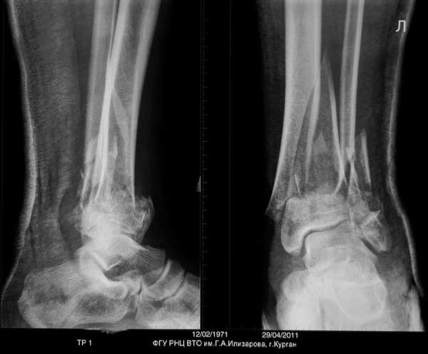 Выставляю случай не менее тяжелый. Фиксация в аппарате Мацукидиса-Шевцова 83 дня, общий срок нетрудоспособности 112 дней. Никаких проблем с остеосинтезом и с последующим лечением не было. Никаких воспалений мягких тканей. 3 перевязки за весь период лечения.Главное - захотеть.