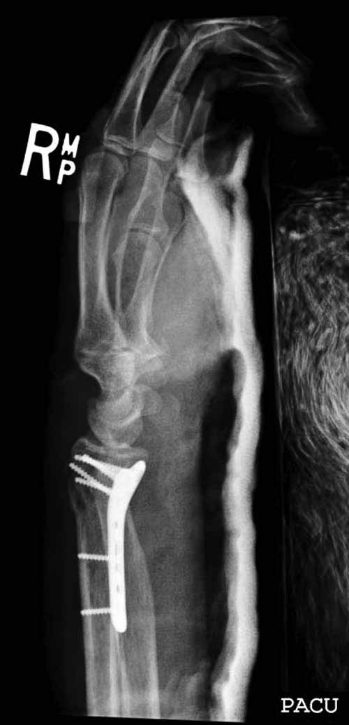 К сожалению аналогичную картинку у оперированной больной не нашел (хотя и копировал- бардак в компе). Там поставили волярную пластинку ChM, которую закупила больница.