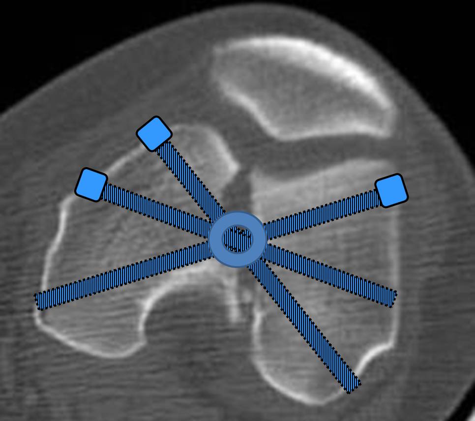 Чуть посложнее, чем один винт. Надо ввести в отверстие спицу, далее по направителю еще две, и по ним канюлированным сверлом. Ну и вводить двумя отвертками надо, чтобы раньше времени не заклинилось.