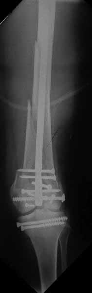Ответ на эту часть Вашего поста – вложенный файл. Больная оперирована неделю назад по поводу открытого перелома дистального эпиметафиза бедренной кости. После операции она идёт в рентгенкабинет для выполнения послеоперационной контрольной рентгенографии, представленной на слайдах 10 и 11. Узнав, почему её фотографируют, просила передать Вам, Антон, привет.