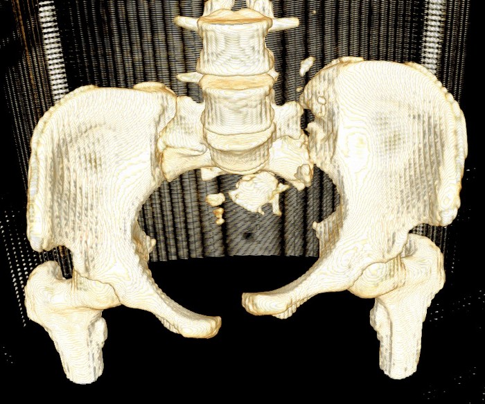 Девочка 14 лет. Кататравма (падение с высоты 4-5 этажа). Вертикально нестабильный перелом таза со смещением, разрывом лонного и левого подвздошно-крестцового сочленения, перелом крестца, открытый перелом костей голени. Ребёнок оперирован на 10-е сутки после травмы - выполнили максимально возможную репозицию на ортопедическом столе, синтез лонного сочленения реконструктивной пластиной (из имеющихся пластин - на 7 дыр - самая длинная, получилось только по 2 шурупа с каждой стороны, поэтому пришлось подстраховаться проволокой), АВФ. Задний комплекс не фиксировали ввиду отсутствия канюлированных (да и неканюлированных)шурупов должной длинны.В настоящий момент перед нами стоит вопросов:1. Обязательно ли фиксировать подвздошно-крестцовое сочленение, либо фиксации АВФ будет достаточно? Аппарат стоит достаточно стабильно, девочка при перемещениях в пределах постельного режима болевых ощущений не испытывает.2. Что делать с отломком крестца, который довольно значительно смещён кпереди? В настоящий момент никаких проблем с дефекацией у больной нет, хотя, глядя на КТ, создаётся впечатление, что отломок прямо-таки лежит на прямой кишке. Репонировать-фиксировать? Просто удалить? Вообще не трогать? Не создаст ли он в дальнейшем проблем во время родов?Хотелось бы знать мнение уважаемых коллег.Заранее спасибо.