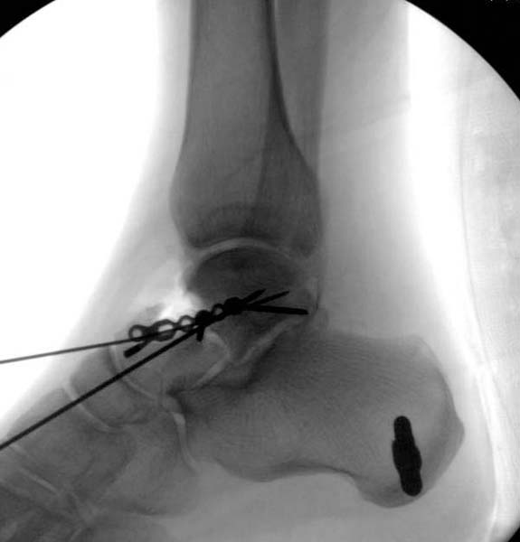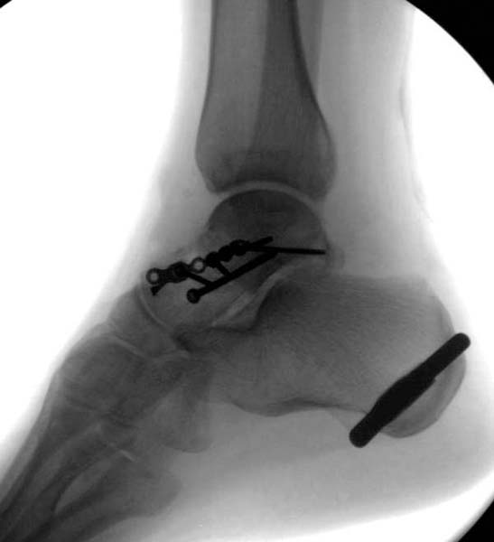После спадения отека на стопе произведена фиксация тарана. Кстати, коллеги пересмотрели первоначальную консультацию по позвоночнику и на двух уровнях провели фиксацию. Из-за длительного постельного режима без нагрузки таз не стали оперировать...