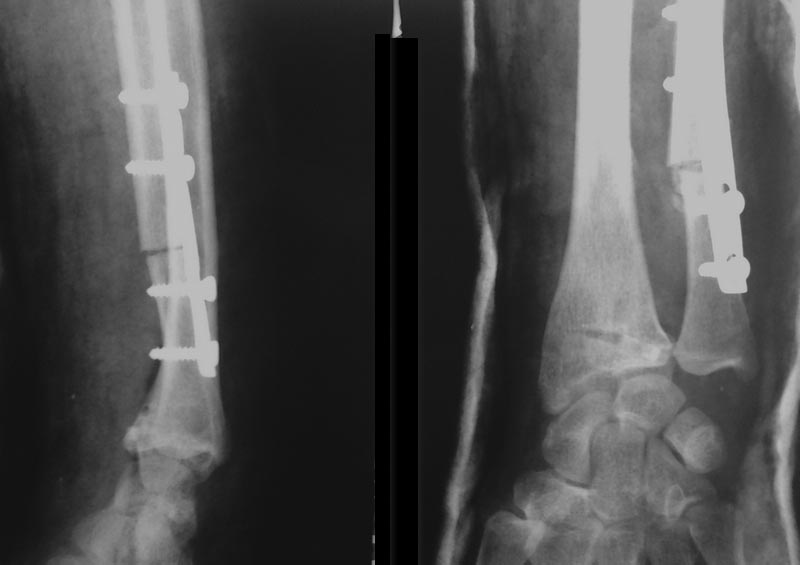 К сожалению функцию оперированной конечности Вы не представили или Вы призываете оценивать функцию по рентгенограммам, выполненным для чего-то в положении сгибания и разгибания в кистевом суставе (кстати не совсем полным, хотя это может быть вариант, но мы об этом не узнаем без сравнения со здоровой конечностью, даже БЕЗ "опросников DASH, ну или MAYO SCORE.....