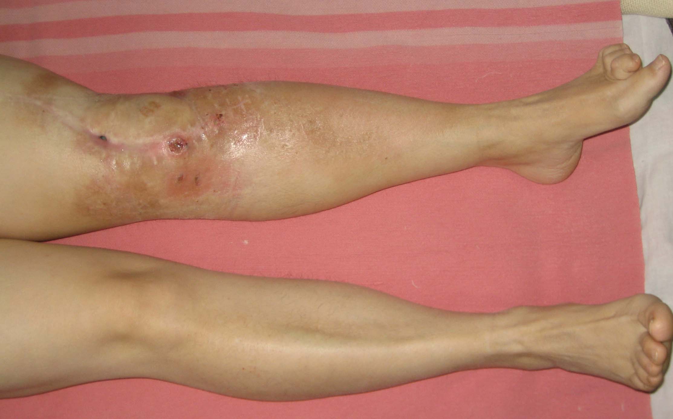 Уважаемый господин Артемьев. Иллюстрация к предложению господина Djoldas Kuldjanov. Ситуция абсолютно идентична-саркома бедра, удаление, онкологический протез, ни дня движений на уровне коленного сустава, несколько лет свищи.