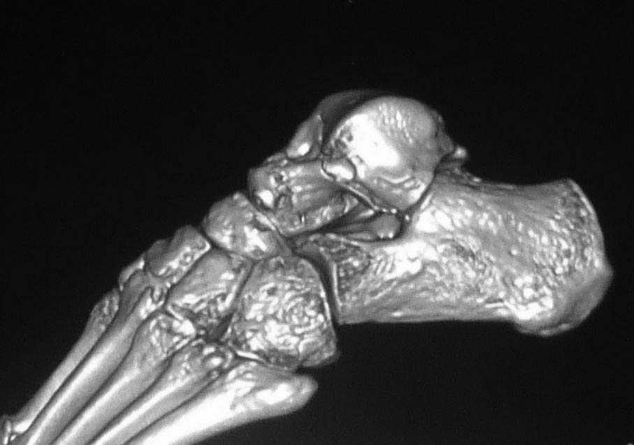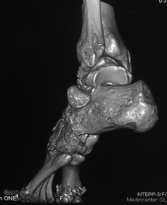 Во вложении похожий случай, оперированный 10 дней назад (с послеоперационными снимками). Для сравнения стрелками на двух рентгенограммах показан нависающий над пяточной костью вывихнутый фрагмент таранной кости. На компьютерной томограмме видно гораздо лучше. Так что о живом подтаранном суставе при сохраняющемся подвывихе говорить не приходится. Кстати, остеотомия внутренней лодыжки в такой ситуации - нормальный этап доступа, который должен планироваться до операции, а не быть следствием "тяжелой репозиции". Сейчас же, судя по плотности проксимального фрагмента, нужно исключать асептический некроз таранной кости и ее несращение. От этого будет зависеть тактика. Без КТ не обойтись. Во всяком случае, артродез голеностопного сустава при несросшейся разрушающейся таранной кости точно не будет правильным решением.