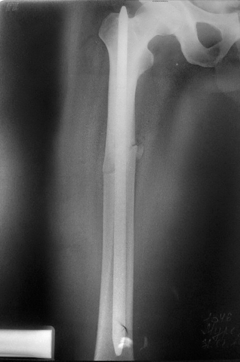 Всем известно, что одной из основных причин осложнений является недостаток обеспечения на местах, потому что не везде условия как в “центре”. Перелом бедра лучше фиксировать интрамедуллярным гвоздем, но при его отсутствии пластина, как гвоздь или наружный фиксатор, может являться методом выбора. А вот рекомендации, как правильно установить пластину, были бы более полезны, чем некорректные комментарии. При открытом методе риск от гвоздя не отличается от такового при использовании пластины, и поэтому не стоит реабилитировать старый гвоздь ЦИТО. Не удаляя сломанных винтов, на пластине можно создать натуральный контур бедра, что невозможно прямым гвоздем. Стабильность конструкции создается не количеством шурупов, а правильным выбором длины пластины!
