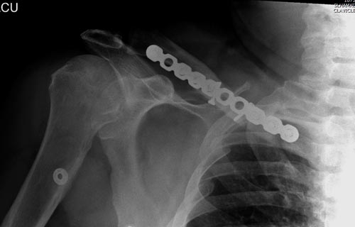 В заключение, только 25% изолированных переломов ключицы, леченных консервативным методом не срастаются, а из них 1/3 симптоматические. Болезненные ложные суставы надо оперировать, и здесь представлен случай свежего болезненного ложного сустава, оперированного через 4 месяца.