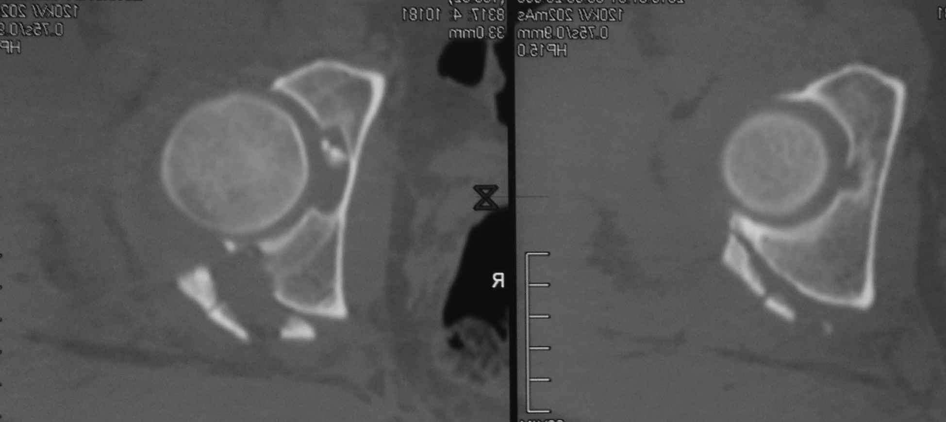 Добрый день, коллеги! Повреждение вертлужной впадины вероятнее всего 62-А1.2 чистый переломовывих, оскольчатый перелом задней стенки, при этом внутрисуставной фрагмент, является частью артикулирующей поверхности ацетабулюм, а следовательно его необходимо извлечь и поместить на место, иначе мозаика может не собраться. Про FAI временно можно не вспоминать (не до него), поскольку наиболее тяжелое повреждение голени требует адекватного вмешательства.На представленных рентгенограммах таза после операции все отлично, полную картину даст КТ.