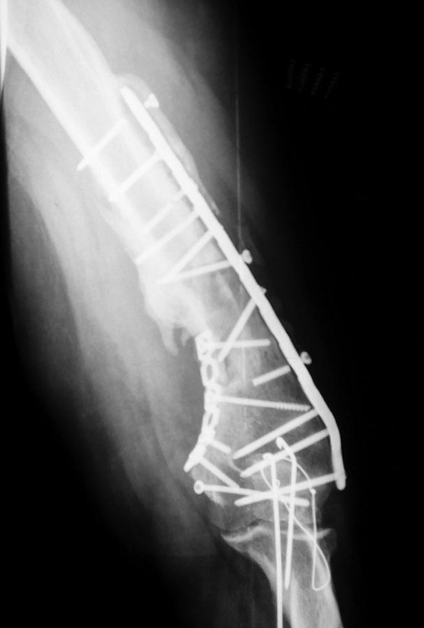 Можно смягчить и по-другому, если учитывать инфекцию, полноценную обработку очага, коррекцию деформации и удаление остатков железа - такая операция не выглядит простой и для очень опытного хирурга