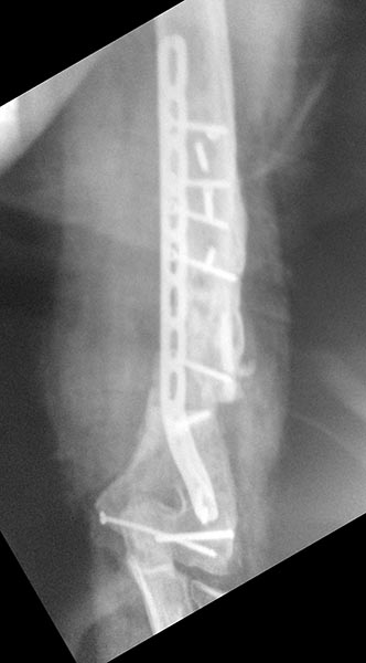 Также по первичным рентгенограммам предположу, что основные сложности при первом остеосинтезе представлял суставной перелом, да и сама травма была достаточно тяжелой.