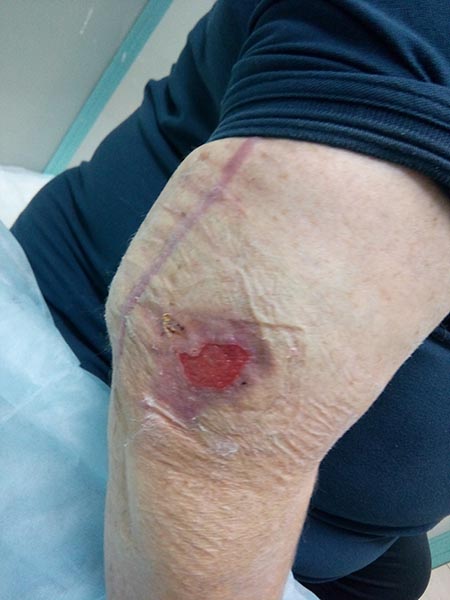Судя по фотографии: в нижнем углу раны свищ? Какое отделяемое? Неплохо выполнить фистулографию.