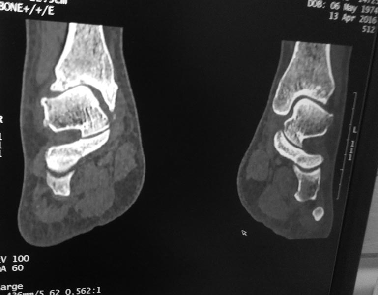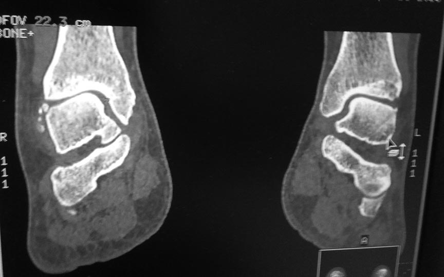 Я тоже согласен, на одном из КТ-снимков, подозрение на перелом шейки таранной кости.