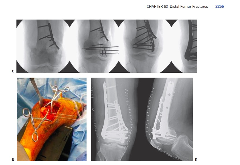 Nonunion of the distal femur after lateral plating is associated with axial malalignment, chronic pain, loss of ambulatory function, and decreased knee ROM. The addition of a medial locking plate with autogenous bone grafting can provide greater stability to allow bone healing and may be used to achieve union in these challenging cases.