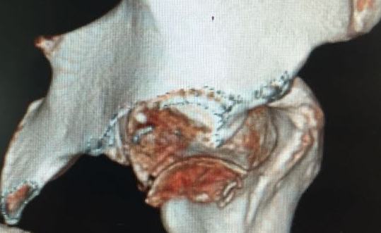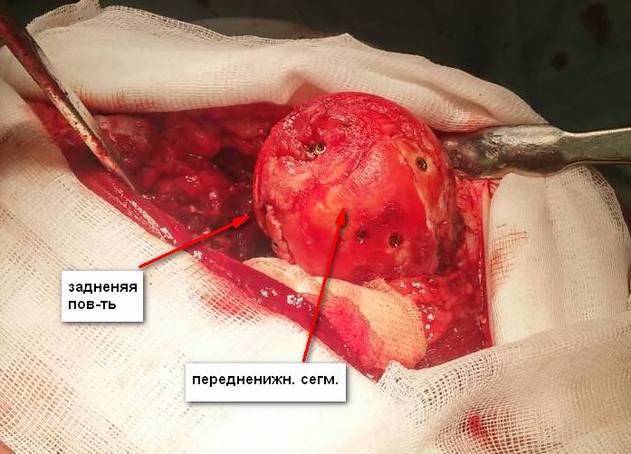 Мы фиксируем задний край впадины не вывихивая головку и готовим на протезирование.