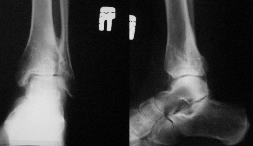 Здравствуйте уважаемые доктора!Прошу помочь определится с дальнейшей тактикой лечения.В январе была травма правого ГСС, "закрытыйпереломовывих правого ГСС с разрывом дистальногосиндесмоза, отрывом заднего края тибиа вывихомстопы наружу". Проведен МОС лодыжек в одной из районных клиник. Наложен циркулярный гипс на три месяца. Послеоперационный период без осложнений, под наблюдением районного травматолога. Реабилитация - массаж, ЛФК. В октябре 2007 сняли конструкции. Примерно через 1 мес. появилась боль при нагрузках в районе нарухной лодыжки, незначительный отек, обычно после длительного хождения (2-3 часа). Обратился к оперировавшему доктору - сделал снимок (во вложении) сказал, есть небольшой подвывих стопы, что ничего страшного, продолжать разрабатывать сустав, назначил противовоспалительные мази. На вопрос о необходимости хирургической коррекции - ответил, ничего делать не надо. Мне 29 лет, искренне хочется сохранить сустав. Уважаемые специалисты, прошу помочь в моем случае. Если необходима какая-либо дополнительная информация (ранние снимки и проч.) - пожалуйста. < | >