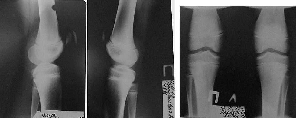 Добрый день, уважаемые коллеги!Очень нужна ваша профессиональная помощь, у мальчика 12 лет проблемы с коленом. Мальчик занимается спортом - баскетбол с шести лет вместе с братом (двойняшки). До прошлого лета никаких проблем не было. Но после приезда из спортлагеря и простудной болезни стали болеть колени. У брата (если эта информация важна ни тогда, ни сейчас никаких проблем нет, нагрузки на тренировках получали одинаково). После двух месяцев боли правого колена (боль появляется при нагрузках - в основном при резком беге, ускорениях, а также при сгибании и разгибании колена в крайние положения) мы сдали анализ на ревматоидный артрит (анализ отрицательный), снимки колена и показали спортивному врачу. Диагноз был поставлен, что это у мальчика болят шляттеры. На два месяца он прекратил тренировки и упражнениями тренировал (закачивал) правую (и заодно левую ногу). Однако к новому году тенденция поменялась, правое колено стало проходить, а левое наоборот беспокоит, за это время боли так и не ушли. Мальчик начал тренировки (по возможности) в зале. К весне правое колено перестало болеть полностью но стало очень сильно болеть левое. После одного из турниров к боли добавился отек (колено довольно сильно опухло) и болело не позволяя делать активные физические упражнения и нагрузки. Нами были сделаны повторно снимки обеих колен (прикреплены). Все это время (уже 9 месяцев) постоянно мажем коленные суставы вольтареном. Хочется попросить у вас профессиональной помощи и по возможности (если сталкивались с подобными ситуациями) порекомендовать наши действия и какой можно поставить диагноз.Заранее спасибо всем за ответы и советы!