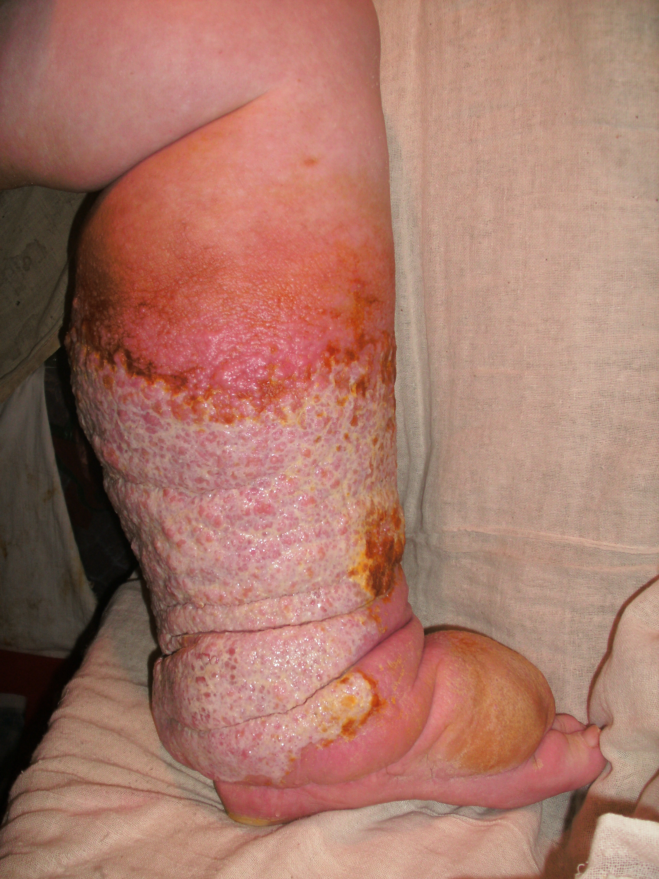 Подскажите, пожалуйста, каким способом можно остановить лимфу? У моей мамы лимфостаз нижних конечностей 3-4 ст., с мая 2009 года начала течь лимфа. Подскажите, пожалуйста, каким способом можно остановить лимфу? У моей мамы лимфостаз нижних конечностей 3-4 ст., с мая 2009 года начала течь лимфа. В настоящее время кожу все разъело, образовались какие-то белые нарости (налет), боли жуткие, как будто исходящие от кости, специфический запах. По назначению врача применяем олазоль, оксикорт аэрозоль, но это не лечит, а только немножко облегчает существование. Сейчас положение ухудшилось. Из левой ноги помимо жидкости (лимфы) вытекает какое-то прозрачное вязкое вещество (наподобие киселя) с белыми и красными прожилками. Лимфы выходит около 3 литров в день. Помогите, что делать?Сопутствующие заболевания: сахарный диабет 2 типа, в декабре 2008 года перенесенное рожистое воспаление левой голени. < | >