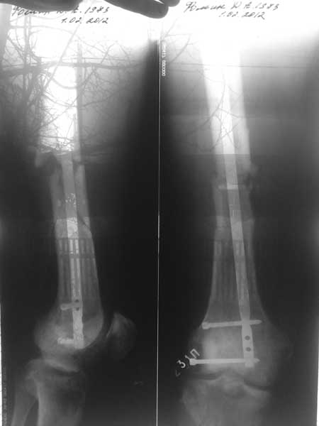 Прежде, чем что-то обсуждать, нужно увидеть свежие рентгенограммы в обеих проекциях, и с захватом коленного и тазобедренного суставов. То есть на всем протяжении бедра.