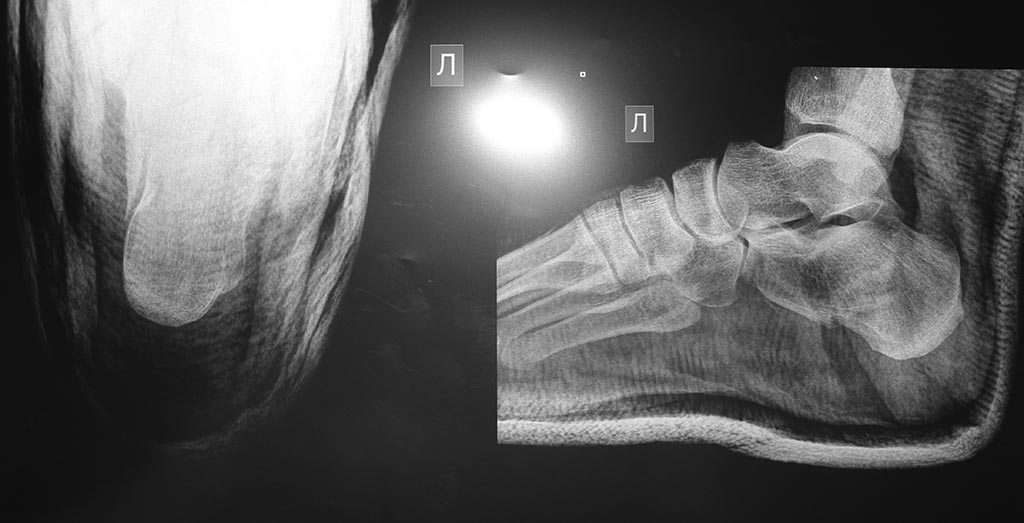 16.07.2015 был перелом левой пяточной кости с незначительным смещением. прилагаемый снимок сделан 20.07.2015 перед наложением гипса. < | >