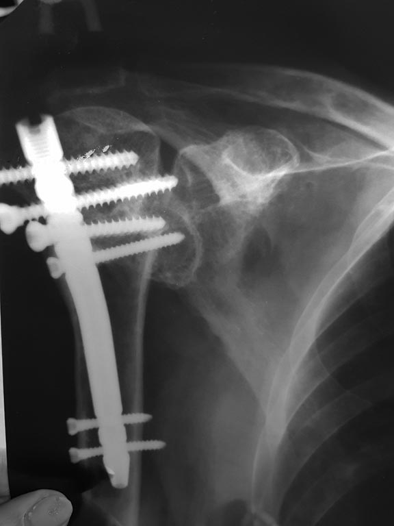 Здравствуйте,больная - женщина 73 года. В ноябре 2017 года оскольчатый закрытый перелом правого плеча. < | >