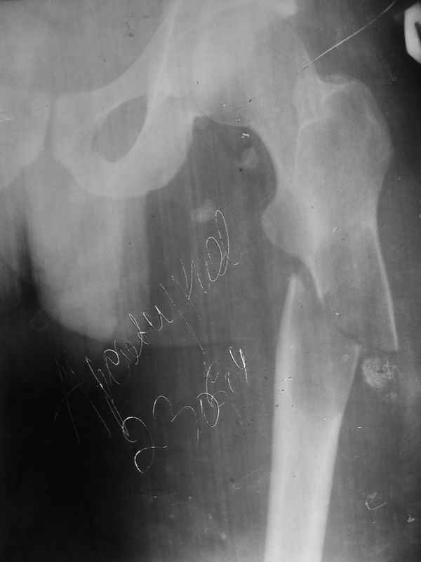 Добрый день, уважаемые коллеги!Мои коллеги из Грозного просили проконсультировать случай больного М. 26 лет. Боли беспокоили около 1 года в области подвздошной ости слева, по поводу чего неоднократно обледовался - неоднократно выполнены снимки тазобедренного сустава. Снимки бедра не выполнялись. 1,5 месяца назад, находясь на работе, поднимаясь по лестнице в больнице почувствовал сильную боль, упал. При этом произошел перелом верхней трети бедра. На рентенограммах, представленных во вложении обнаружен патологический перелом. Траматологи расценивают это как кистозную дисплазию, хотя уверенности нет. Сейчас находится на склетном вытяжении. Каков прогноз заболевания? Верна ли тактика, показаны ли в будущем какие-то вмешательства?Заранее спасибо.С наилучшими пожеланиями, Бекхан.