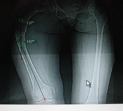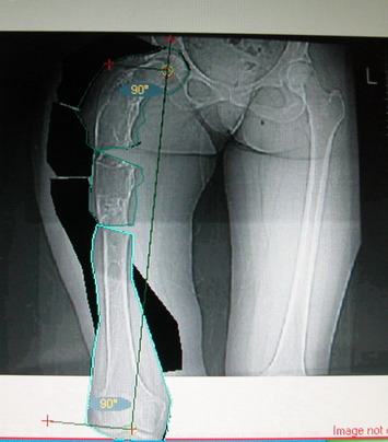 Моё мнение, что двойная остеотомия бедра с аппаратом Илизарова + Гексаподный механизм, или Тэйлора, В данной ситуации является методом выбора. Я очень извеняюсь за качество прилагаемых снимков, в которых я постарался отразить разницу междe одной и двумя остеотомиями бедра.