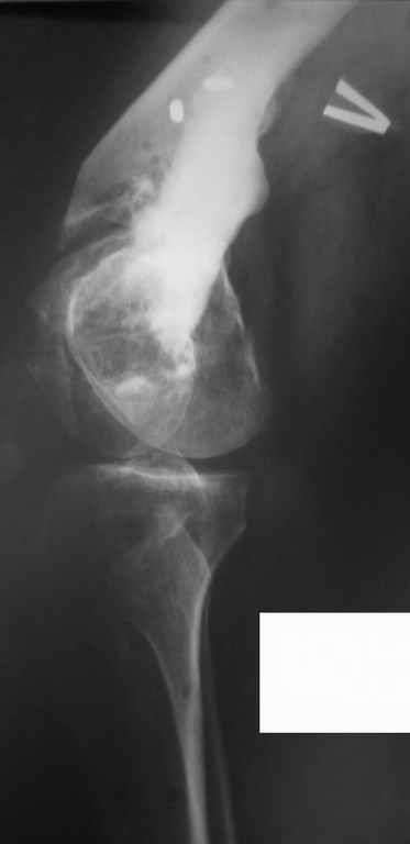 Впрочем, все равно придется через небольшой разрез убирать обломки винтов, лучше воспользоваться специальными инструментами (если нет - корончатая фреза + втулка с резьбой и стопором, спросить в "Деосте"). Востановить аппаратом недели за 2 длину и ось. И вторым этапом перейти на интрамедуллярный остеосинтез. Причем можно и анте-, а не ретроградный. Если в аппарате все уже стоит ровно - это обычно довольно гладкая и предсказуемая процедура. Ну и тут же перейти на эндопротез. Если что-то не так, протез можно и позже, когда полностью восстановится опороспособность левой ноги.